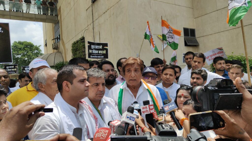 नेतृत्व कर रहे कांग्रेस जिला अध्यक्ष पंकज डावर और वर्धन यादव के साथ-साथ फिल्म अभिनेता व वरिष्ठ कांग्रेस नेता राज बब्बर भी मौके पर मौजूद रहे।