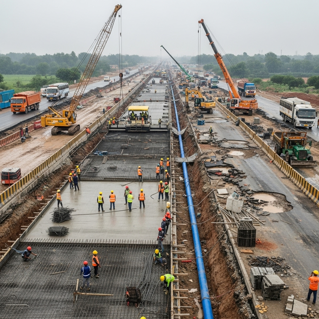 - सर्विस रोड की मरम्मत और आरएमसी सड़कों का निर्माण