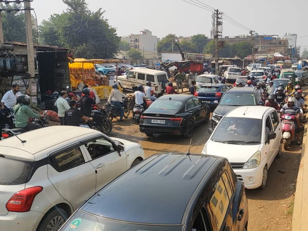 धनतेरस की रौनक के बीच शनिवार को गुरुग्राम में सड़कों पर भारी ट्रैफिक जाम देखने को मिला। सुबह 8 बजे से ही शहर की यातायात व्यवस्था चरमरा गई और पूरे दिन लोगों को जाम से जूझना पड़ा।