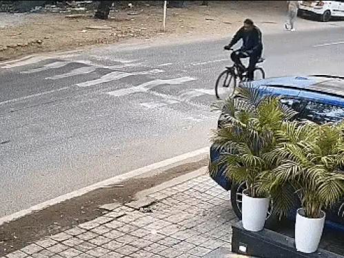 - स्पीड ब्रेकर पार करने के बाद कार सीधी जाकर साइकिल सवार को टक्कर मारती है
