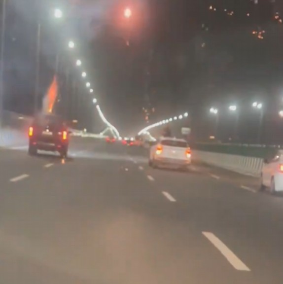 गुरुग्राम में एक बार फिर सड़क सुरक्षा की अनदेखी का मामला सामने आया है। द्वारका एक्सप्रेसवे पर कुछ युवाओं ने नई काली स्कॉर्पियो कार की छत पर स्काई-शॉट पटाखे फोड़कर सरेआम जश्न मनाया, जिससे आसपास चल रहे अन्य वाहन चालकों की जान जोखिम में पड़ गई।