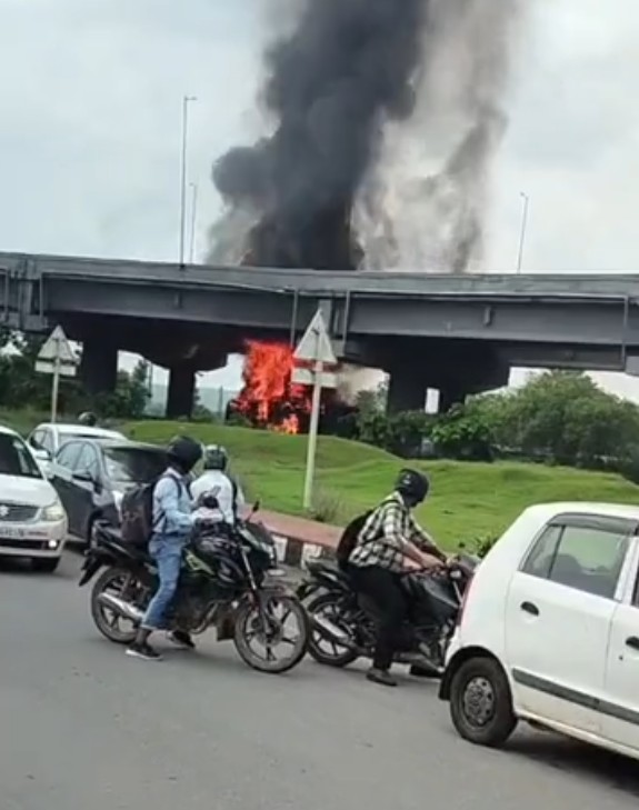 गुरुग्राम में शुक्रवार सुबह एक बड़ा सड़क हादसा हो गया। दिल्ली-मुंबई एक्सप्रेसवे पर तेज रफ्तार में आ रहा एक कंटेनर अलीपुर गांव के पास अचानक पुल से नीचे गिर गया। गिरते ही उसमें आग लग गई। इस हादसे में ड्राइवर और क्लीनर दोनों गंभीर रूप से घायल हो गए।