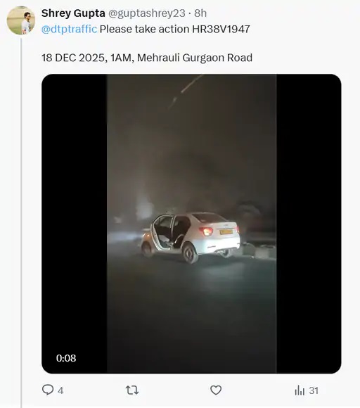 हालांकि, गुरुग्राम पुलिस की ओर से अब तक सोशल मीडिया पर कोई आधिकारिक प्रतिक्रिया नहीं आई है। शिकायतकर्ता ने गुरुग्राम पुलिस को भी टैग किया है, क्योंकि घटना बॉर्डर क्षेत्र के आसपास की बताई जा रही है और कोहरे के कारण सटीक लोकेशन स्पष्ट नहीं हो पाई है।
