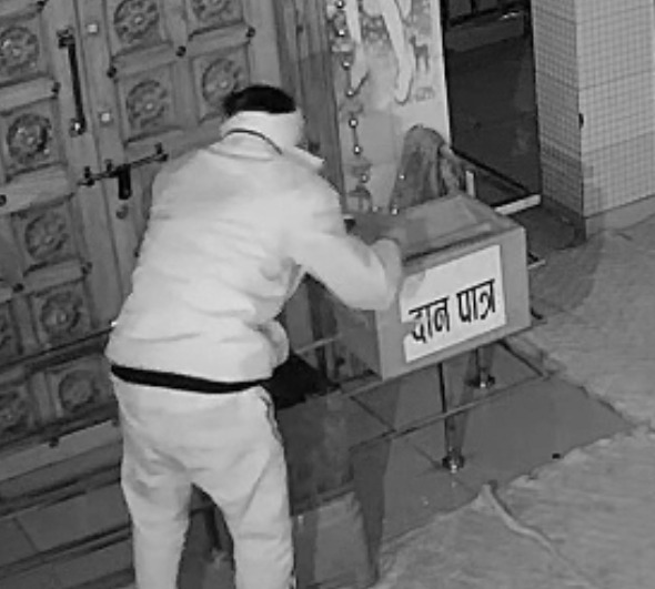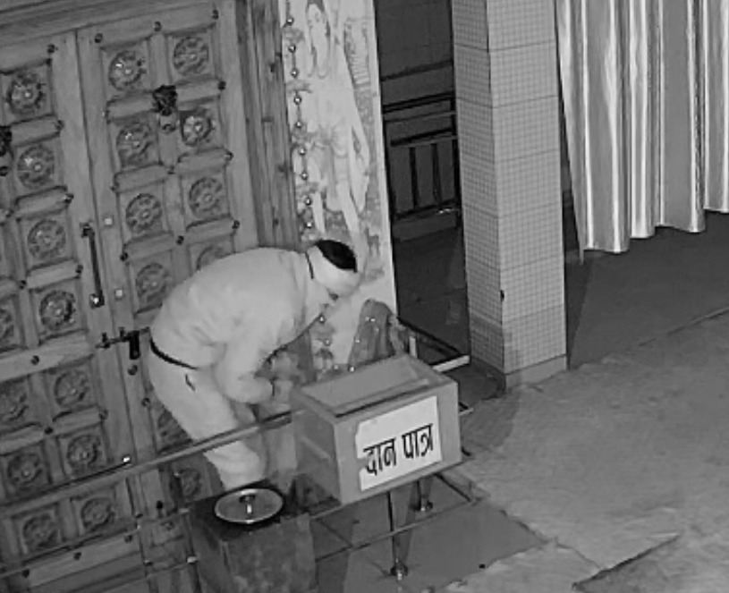 चोरी की घटना मंदिर में लगे सीसीटीवी कैमरों में कैद हो गई है। फुटेज में एक व्यक्ति मंदिर परिसर में घुसते और दान पेटी को उठाने की कोशिश करते हुए दिखाई दे रहा है। पुलिस ने फुटेज कब्जे में लेकर जांच शुरू कर दी है।