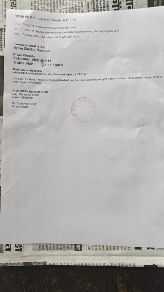 सोमवार सुबह गुरुग्राम में उस समय अचानक अफरा-तफरी का माहौल बन गया, जब शहर के 10 से अधिक स्कूलों को बम से उड़ाने की धमकी मिलने की खबर सामने आई। यह धमकी स्कूलों के आधिकारिक ई-मेल आईडी पर भेजी गई थी। सूचना मिलते ही स्कूल प्रशासन, पुलिस और सुरक्षा एजेंसियां तुरंत हरकत में आ गईं।